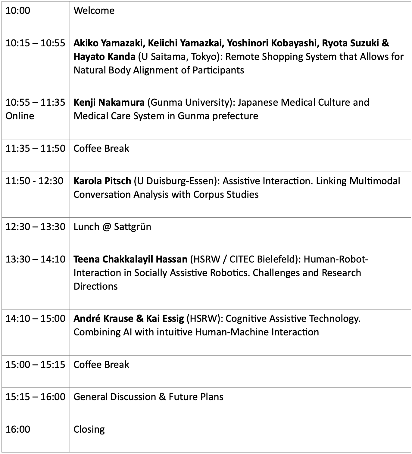 Am 29. Februar 2024 fand der internationale Workshop zum Thema “Medical care and daily activities using technology” unter der Leitung von Prof. Karola Pitsch statt. Das Ziel dieses Workshops war es, internationale Grundsätze zur Unterstützung von medizinischen und täglichen Aktivitäten mithilfe von Technologie zu diskutieren. Forscher aus den Bereichen Geisteswissenschaften, Sozialwissenschaften und Informationstechnologie präsentierten ihre Arbeit zu assistiven Technologien in der Zwischenpandemie-Ära.