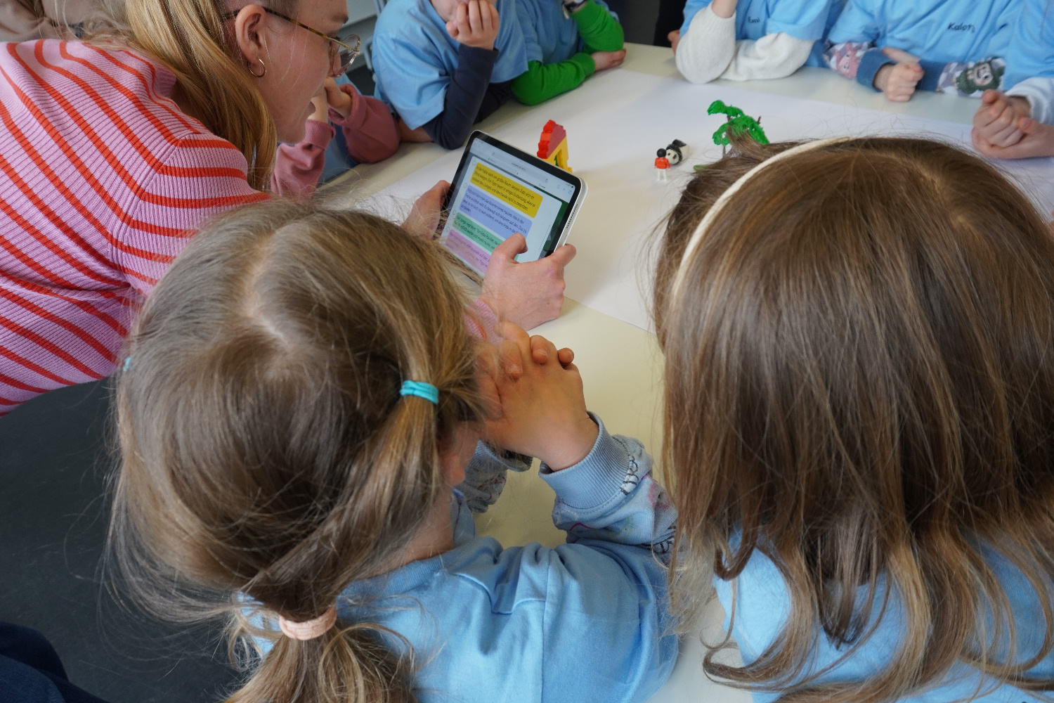 Im AIS-Lab nahm Kyra Kannen (ZAT Rhein-Ruhr) die Kinder mit auf eine Entdeckungsreise durch unsere Forschungstechnologie. Die Kinder testeten unter anderem AMICA, einen Chatbot der ursprünglich für den Schulkontext entwickelt wurde, sowie Tangents, ein System bei dem Kinder mithilfe von Spielobjekten eigene Geschichten erschaffen können. Die Begeisterung der Kinder war deutlich spürbar und lieferte uns gleichzeitig wertvolle Eindrücke darüber, wie unsere Systeme auf jüngere Nutzerinnen und Nutzer wirken.
