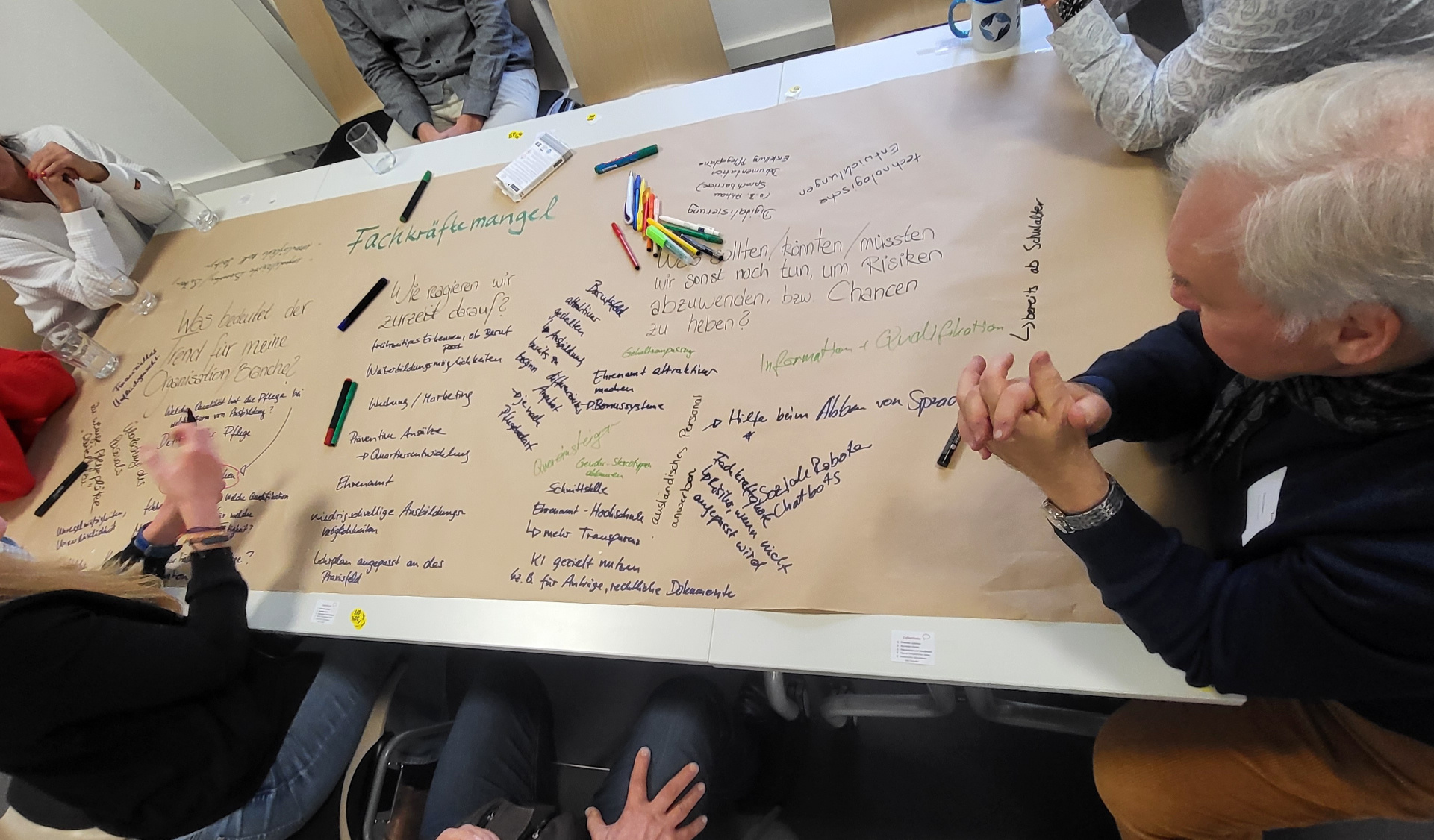 Beim Auftakt waren vor allem soziale Träger, Pflegeeinrichtungen und Kommunen vertreten und verdeutlichten: Nur gemeinsam – über Sektor- und Organisationsgrenzen hinweg – kann ein realistisches Zukunftsbild entstehen. Die Teilnehmenden schätzten besonders den Raum, den der Workshop bot, um jenseits des Alltagsgeschäfts über grundlegende strategische Ausrichtung der eigenen Organisation nachzudenken.